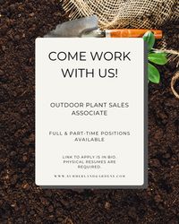 We are hiring a year-round Plant Sales Associate. Read the job description, submit an application, and drop off your resume today!